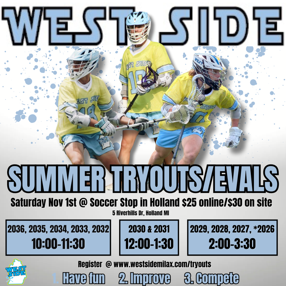 - $25 per player to try out paid at online or $30 at check-in. Cash, check (West Side Lacrosse) or venmo (@Murle-greer)